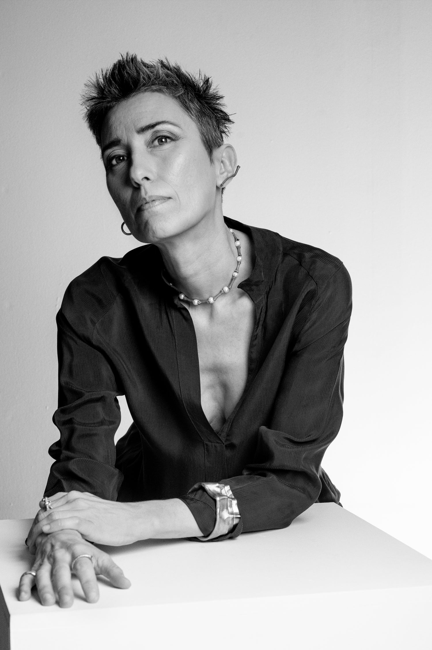 Angela Lago designs and makes sculptural jewelry in her Madrid studio.